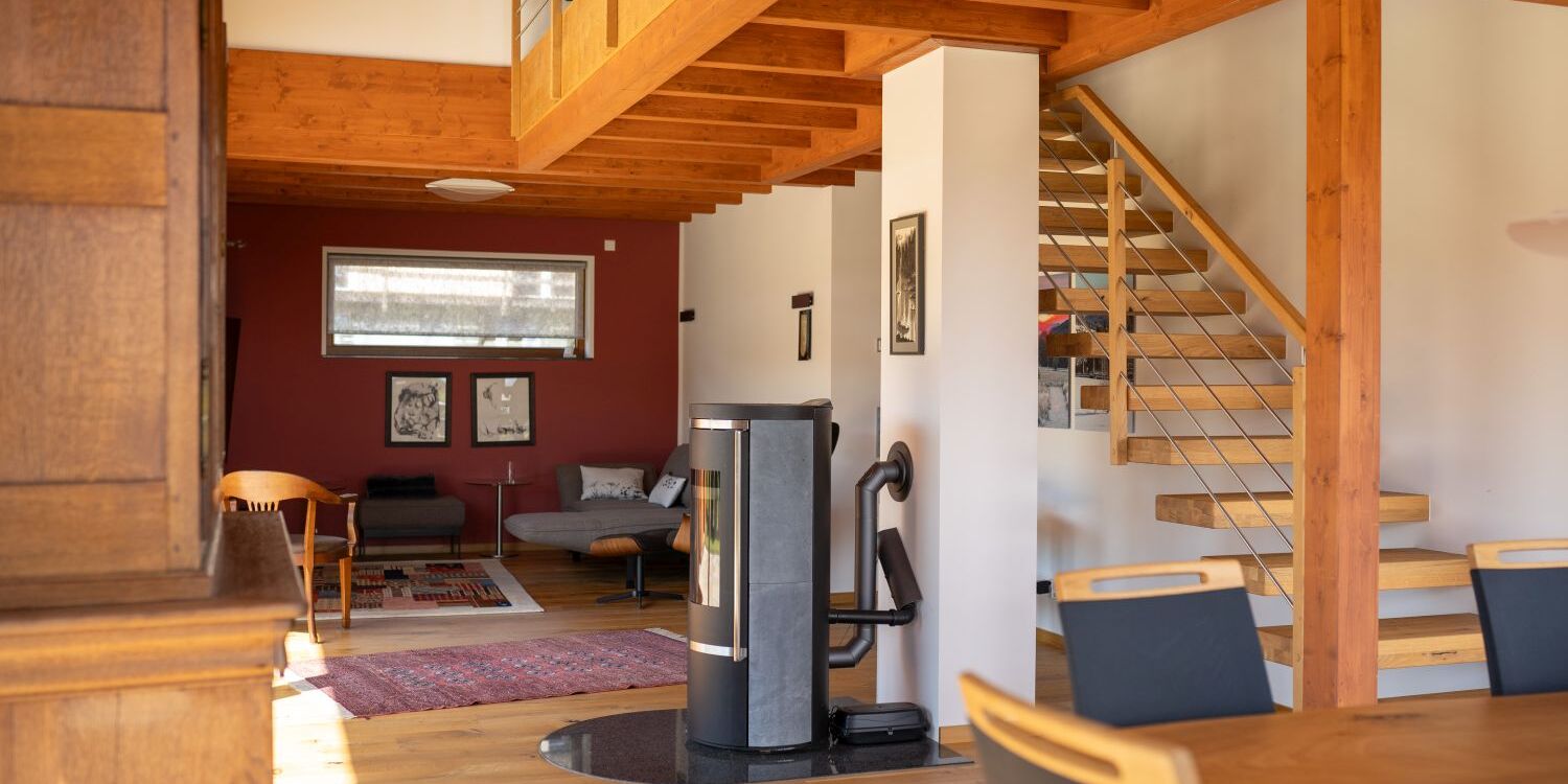 Auch der Pelletofen im Wohnbereich überzeugt durch seine Praktikabilität: Er sorgt in den kühleren Monaten für behagliche Wärme im ganzen Haus, gesteuert über Smart-Home-Technologie sogar per Handy. Technologisch ist das Haus auf dem neuesten Stand: Eine Luft-Wasser-Wärmepumpe und Fußbodenheizung garantieren ein komfortables Raumklima bei minimalem Energieverbrauch. Auf dem Dach befindet sich außerdem eine 11 kWp Photovoltaikanlage, die den Strombedarf deutlich senkt. Für Herrn Langen ist das besonders wichtig. Sein Ratschlag an andere Bauherren: Bei der Ausrichtung des Hauses sollte unbedingt die Effizienz der Photovoltaikanlage berücksichtigt werden, damit möglichst viele Sonnenstunden ausgenutzt werden können.