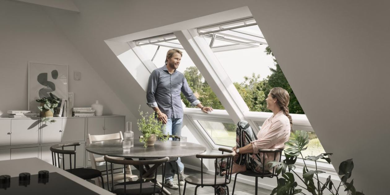Aufkeilfenster bieten gleich mehrere Vorteile. Sie sind Gauben ähnlich und werden als keilförmiges Element auf dem Dach installiert. Sie lassen sich kippend oder schwingend öffnen – wie Dachfenster – sorgen aber für mehr Kopffreiheit.