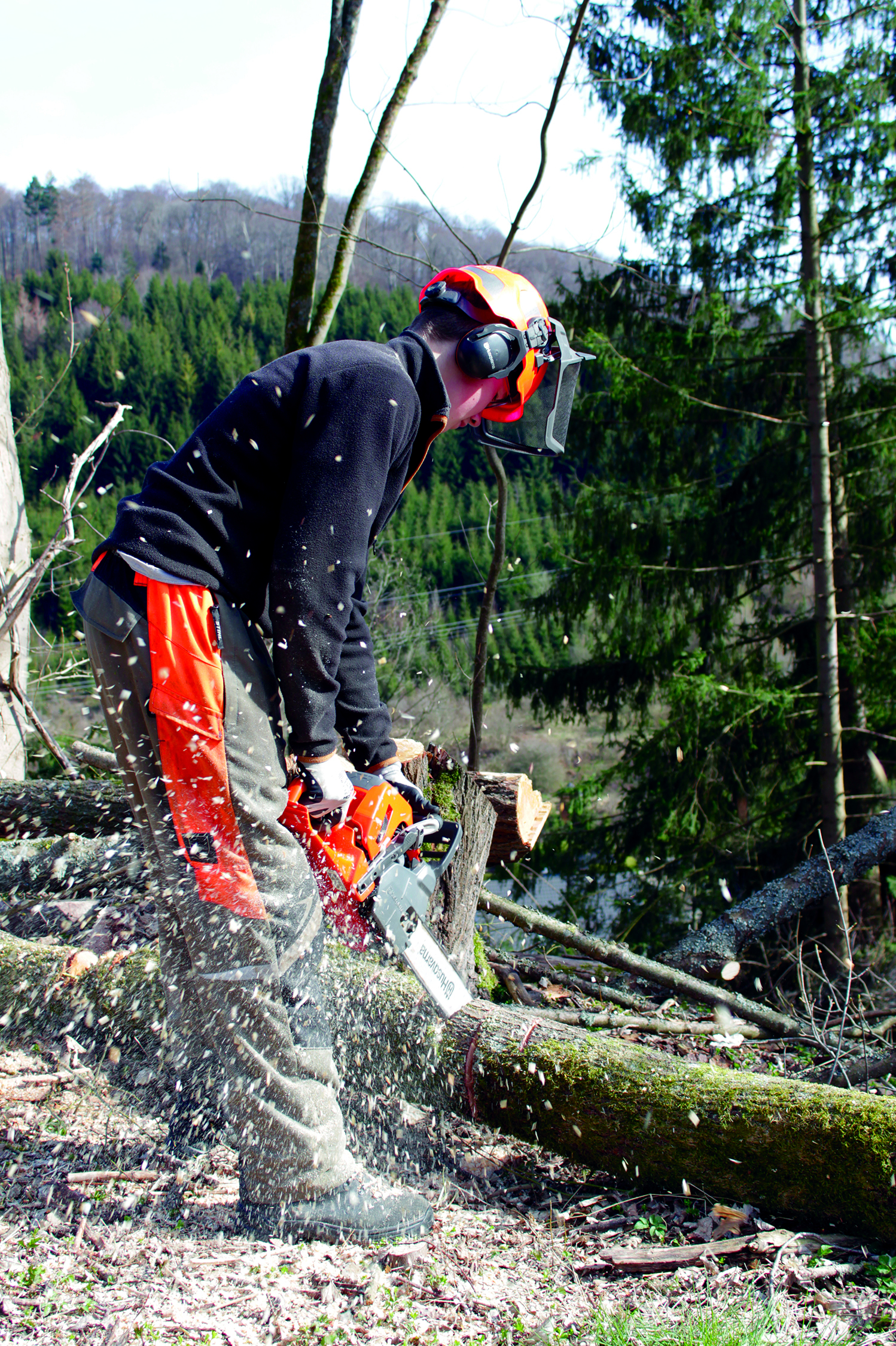 Während die einen sich zwischen den vielfältigen Ausbildungsmöglichkeiten kaum entscheiden können, gibt es die anderen, die schon sehr früh und sehr genau wissen, was sie wollen. „Ich habe schon von klein auf immer gern im Wald gespielt“, berichtet Hendrik. Ob da schon die Gedanken an den späteren Beruf aufkeimten? Wenn man Hendrik bei der Arbeit zuschaut, kommen da nicht die geringsten Zweifel auf. Über die Aufgaben, die bald auf ihn zukommen, weiß Hendrik schon bestens Bescheid: Das Aufforsten von Flächen mit selbst gezogenen Bäumen. Das Pflegen und Schützen von Waldflächen, aber auch von Biotropen, Mooren und Gewässern. Für die Walderneuerung ernten Forstwirte Tannenzapfen oder sammeln den Samen von Laubbäumen. „Umweltschutz ist mir extrem wichtig“, sagt Hendrik. Forstwirte bauen und unterhalten auch Wald- und Forstwege, montieren Hochsitze, bringen Nistkästen an und kümmern sich um Wildfutterplätze. „Und die körperliche Arbeit ist ja auch gut für die Gesundheit, besonders ab einem gewissen Alter“, sagt der 16-Jährige und grinst, sich seiner Jugend bewusst. Das Fitness- Studio kann er sich sparen. Besondere Freude macht Hendrik die Arbeit mit der Kettensäge. Bei der Holzernte müssen Bäume gefällt, die Stämme entastet, gemessen und markiert werden. Hendrik freut sich schon darauf, dass er schon in wenigen Jahren auch Harvester fahren darf, die großen Holzerntemaschinen. Die bringen sogar ein wenig Digitales in den Wald, denn während diese die Bäume verarbeiten und messen, übermitteln sie die dabei gewonnenen Daten direkt an forstwirtschaftliche Informationssysteme. Mit soviel Computer im Wald kann, kann Hendrik – bei aller Liebe zur Natur - gut leben.