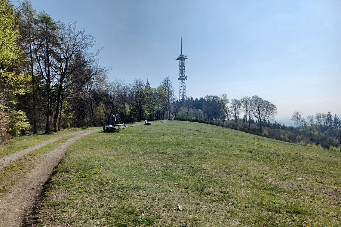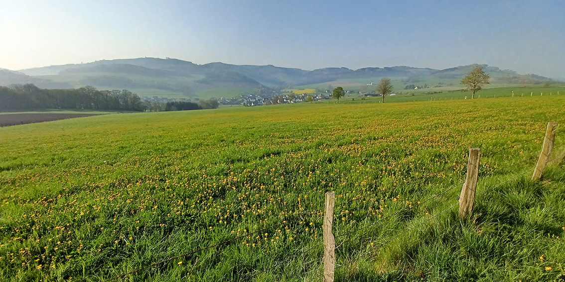 Hinter dem weithin sichtbaren weißen Fernmeldeturm eröffnet sich die atemberaubendste der vielen Aussichten auf der Tour: über Felder und Wiesen hinweg sieht man einige 700er- und 800er- Gipfel in den Gemeinden Olsberg, Winterberg, Schmallenberg und Bad Berleburg, wow!