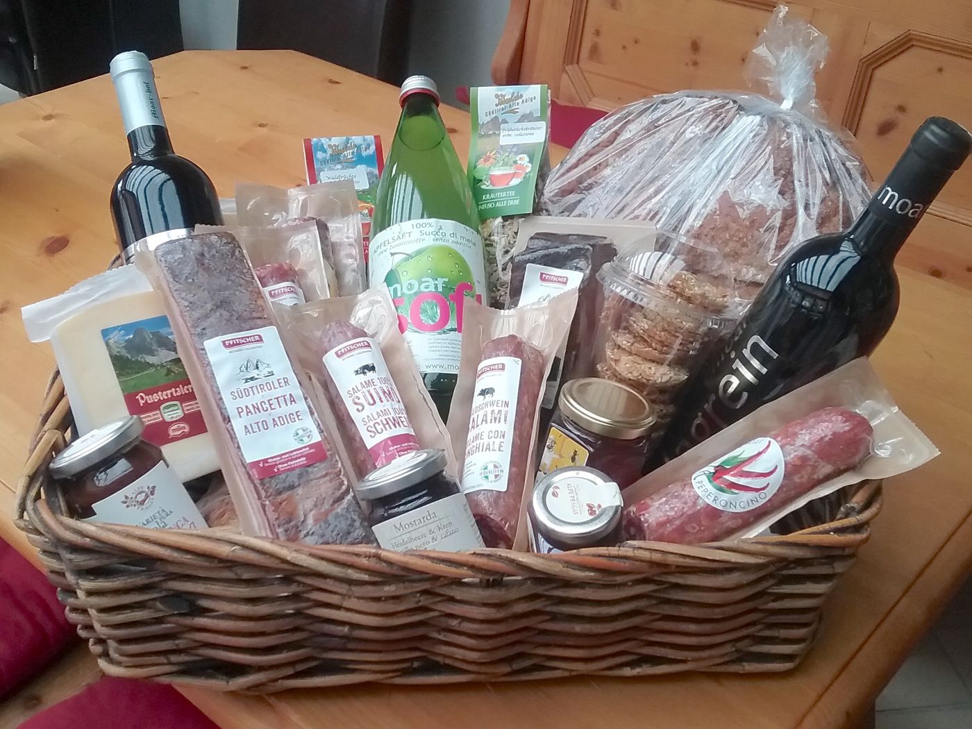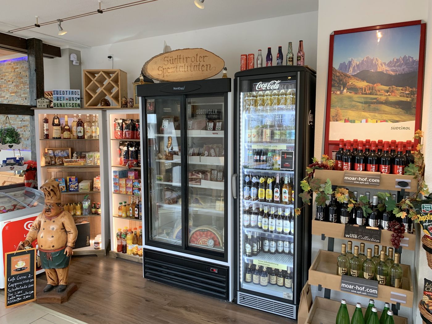 Im kleinen Lebensmittelshop des Südtiroler Backhauses erhalten Sie alle Lebensmittel für den täglichen Bedarf. Hierzu gehören Butter, Käse, Wurst, Kaffee und Frischmilch sowie diverse alkoholische und alkoholfreie Getränke. Entdecken Sie einen erlesenen Mix aus Produkten aus der Region und aus Südtirol.