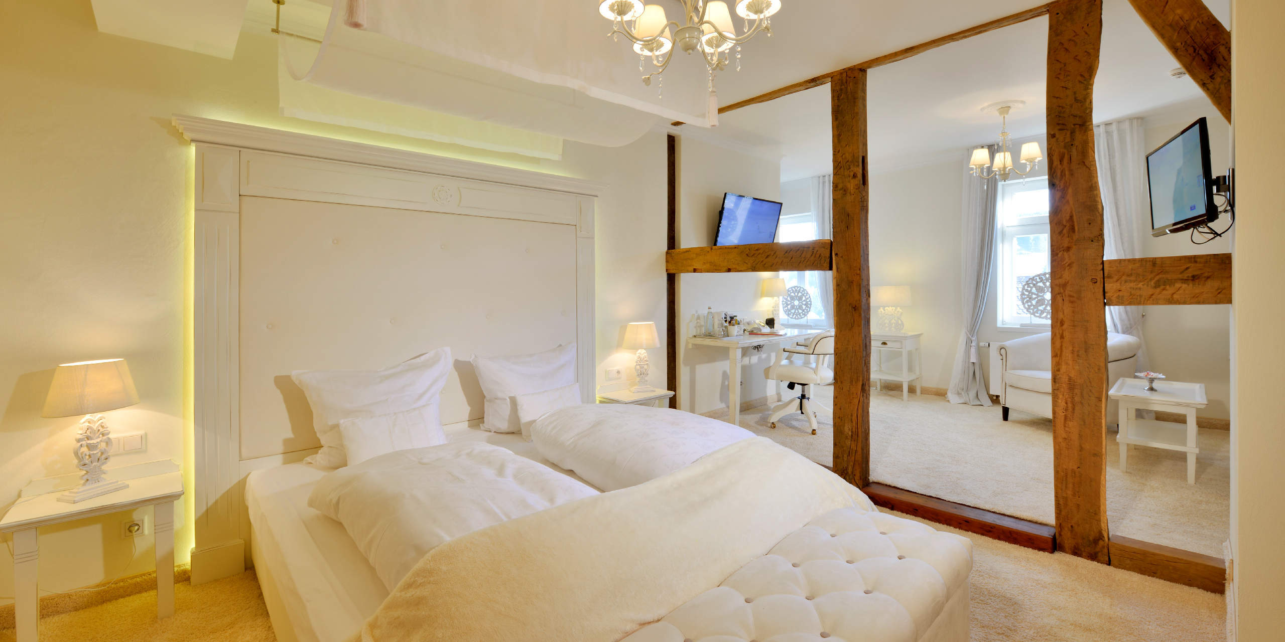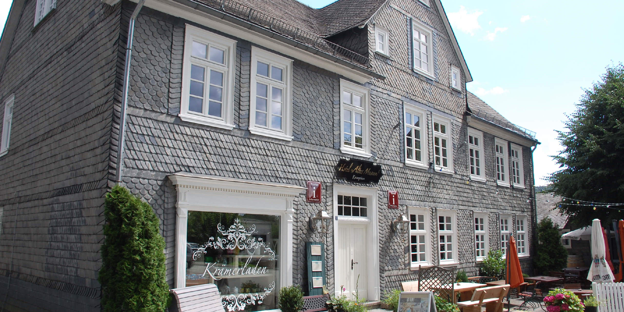 Hier geht das Urlaubsvergnügen weiter. Neben wunderschönen, individuell eingerichteten Zimmern mit nostalgischem Charme und modernstem Komfort bekommt man bereits im Erdgeschoss das Gefühl, eine kleine Zeitreise zu machen. Im Krämerladen von 1825 lassen sich Souvenirs und Geschenke in einem ganz besonderen Ambiente einkaufen.