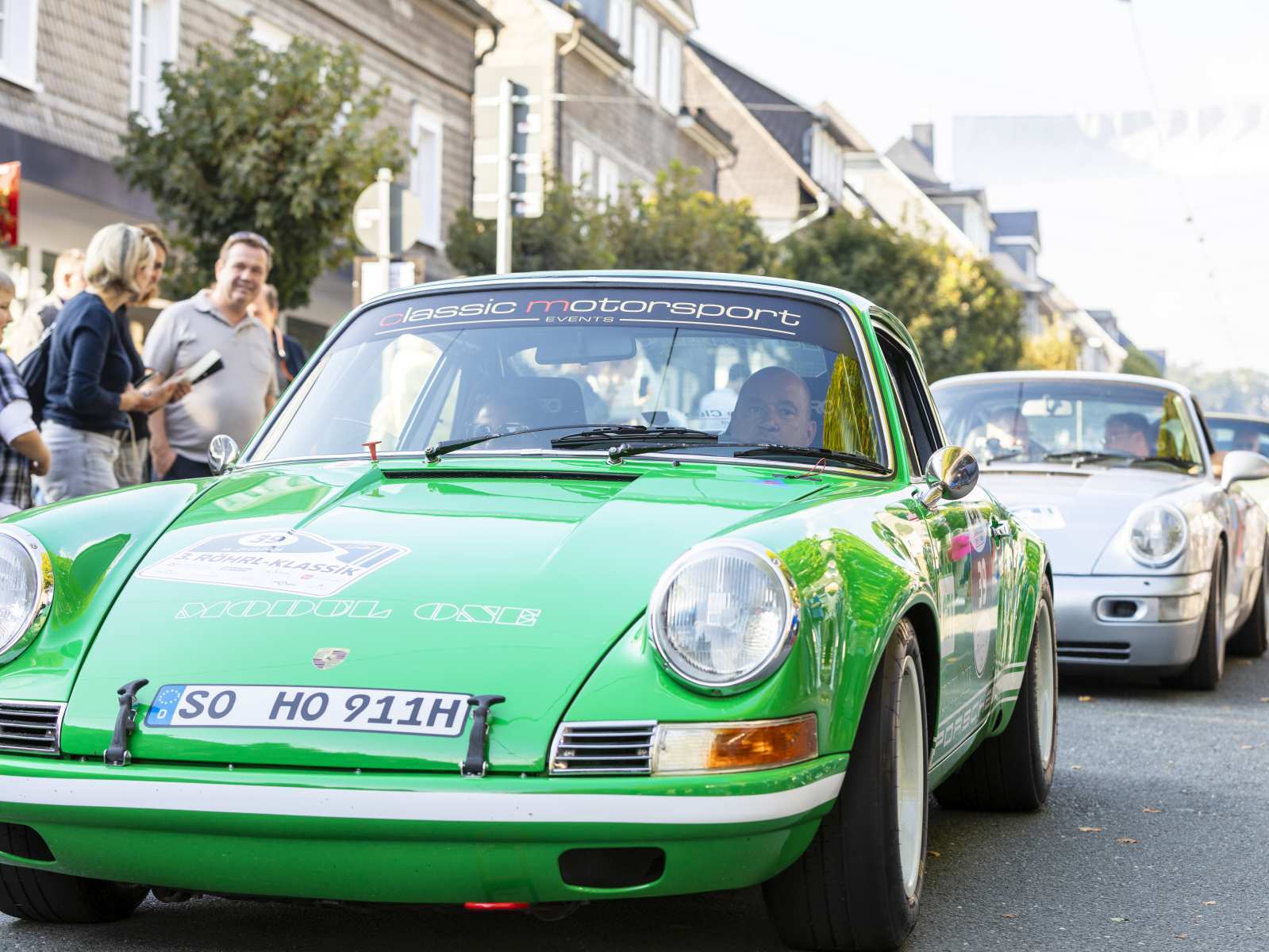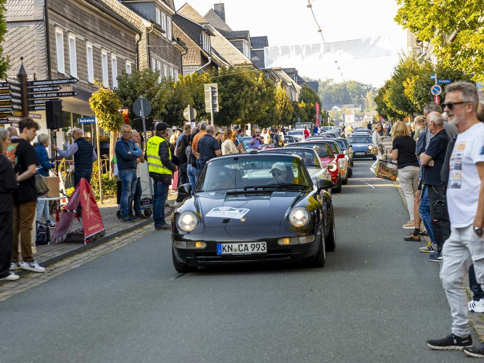 Mit dabei waren 150 atemberaubende Porsche-Oldtimer, die auf einer beeindruckenden Route durch die Region fuhren. Im Herzen Schmallenbergs, entlang der historischen Weststraße, konnten zahlreiche Besucher die farbenfrohe Rallye hautnah miterleben. Ein besonderes Highlight war der Stopp vor dem Hotel Störmann, wo sich Fans nicht nur die Oldtimer aus nächster Nähe ansehen konnten, sondern auch die Möglichkeit hatten, Autogramme von Rallye-Legende Walter Röhrl, zweifacher Rallye-Weltmeister, zu ergattern und Fotos mit ihm zu machen. Der Schauspieler Hinnerk Schönemann, bekannt aus Serien wie Nord bei Nordwest, zählte ebenfalls zu den prominenten Teilnehmern der Rallye.